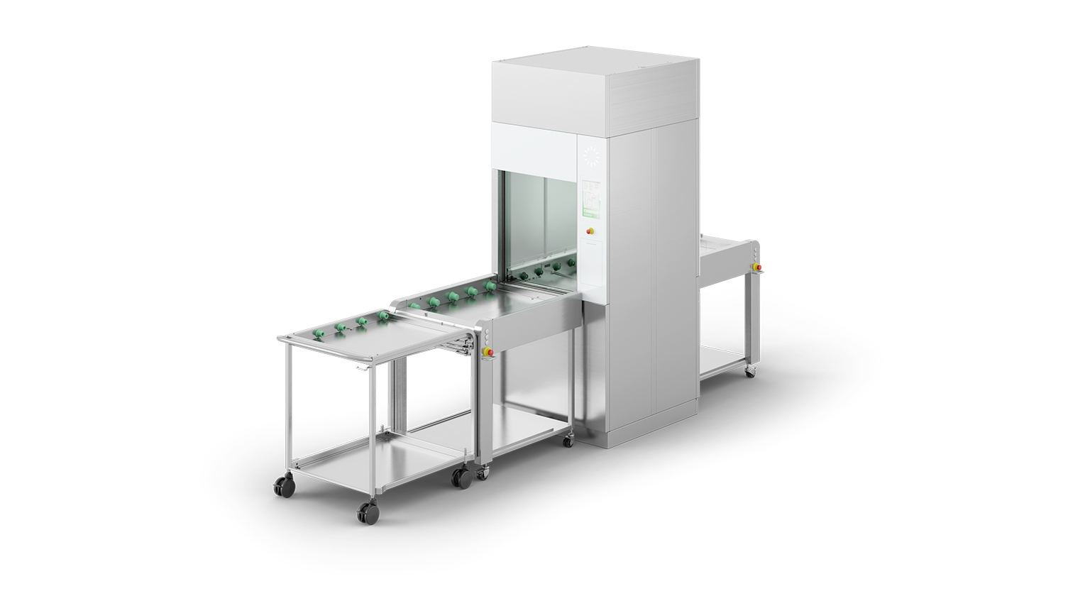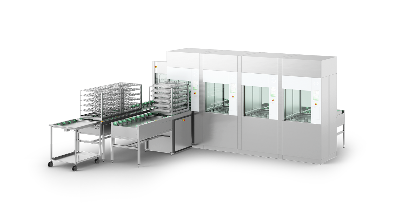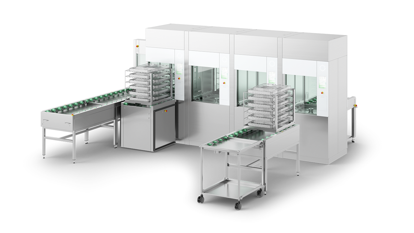 A variety of automation options for our WD 290 IQ Washer / Disinfector; from full, closed loop conveyor systems to space saving assisted load and unload systems.